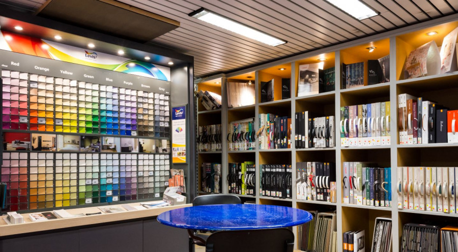 In a space of more than 1000 m², you will find our different products and you will be able to benefit from our advice not only for paints but also for all types of floor and wall coverings such as Mortex or Quick-Step parquet.